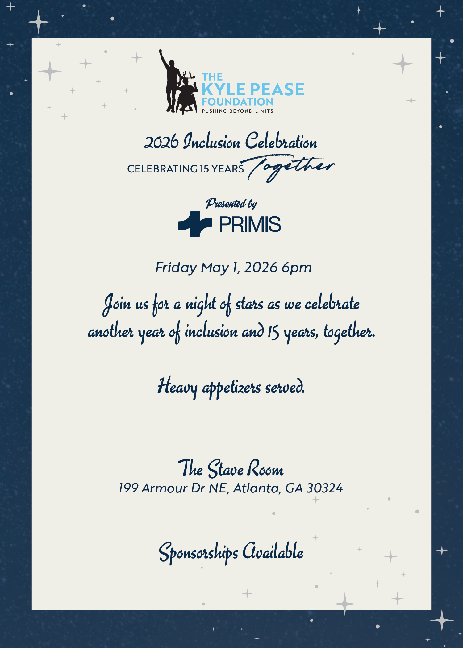 Proceeds from this event directly support grant funding and new opportunities for inclusion—empowering individuals with disabilities and advancing the mission of The Kyle Pease Foundation.